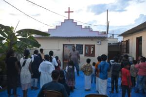 The Ashirvad CSC team, including its director, Rev. Fr. Anthony Arul SJ, visited the Spandana Study Centre at Ramaiah Colony, Chemmasandara 2 and Kaveri Nagar slums. They motivated 25 children for the new academic term, shared inspiring words, and concluded with cake and ice cream. The visit strengthened the bond between the team and the children, fostering a sense of community and encouragement.