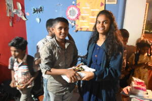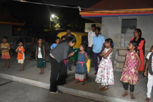 Rev. Fr. Arul Anthony SJ and the Ashirvad CSC team visited the Spandana Study Centre at L.B. Shastri Nagar. Engaging 37 children in motivational talks, fun educational activities, and games, they distributed study materials and school supplies, concluding with cake and joyful celebrations. The entire evening of activities was anchored by Ms. Deekshitha.