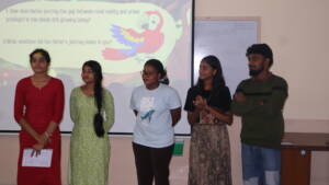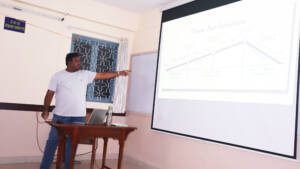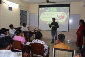 Fr. Anthony Arul SJ and Mr. Arockya Selva conducted an interactive session on Film Appreciation for second- and third-year Sahaya students attending a month-long residential program in English and academics at Ashirvad. The session featured a discussion on the Kannada film Harivu, highlighting human struggle and dignity. Fr. Anthony introduced basic filmmaking concepts, story structure, and the role of climactic moments in conveying meaning. Students reflected in groups and presented their insights, enhancing critical thinking, teamwork, and public speaking.